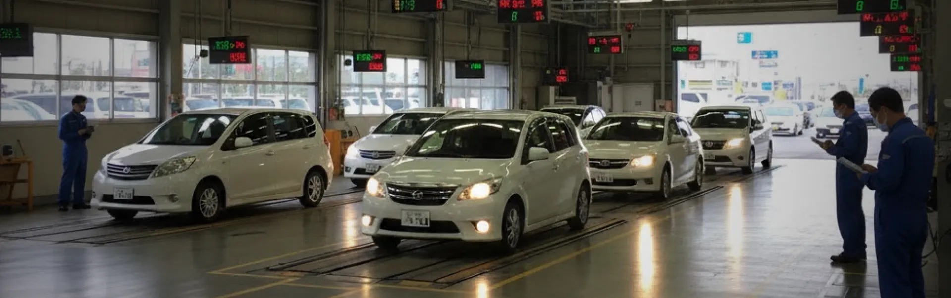 認証工場では、自社で点検・整備を行った後、最終的な確認を国の検査場(運輸局)で行います。