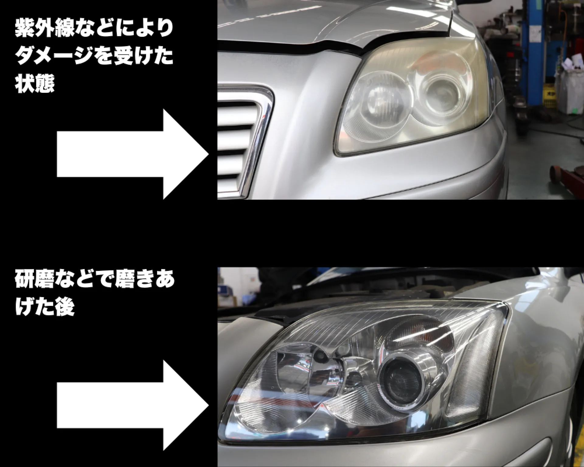 ヘッドライト研磨も本格的な研磨から、車検の検査基準に満たす程度の簡易研磨と種類をご用意しております。ご予算に合わせてご提案をさせていただきます。